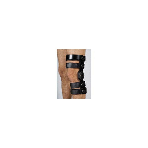 * Polycentric hinge with extension and flexion stop settings: