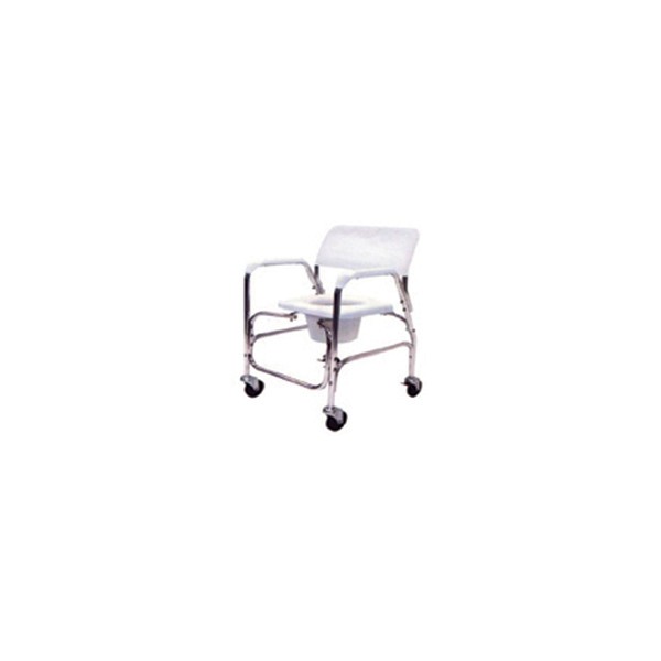 * 3” swivel caster wheels * Rear wheel locks * Padded seat * Fits over most toilets * Weight Limit: 220 lbs.